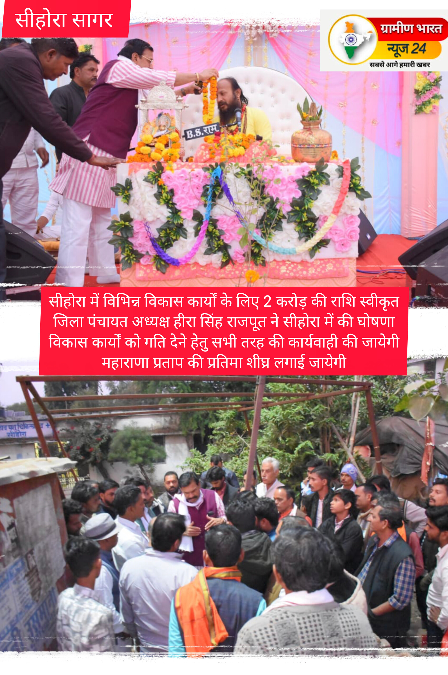 सीहोरा सागर दिनांक 20 नवम्बर 2025: जिला पंचायत अध्यक्ष हीरा सिंह राजपूत ने सीहोरा क्षेत्र के विकास के लिए 2 करोड़ के विकास कार्यों की घोषणा करते हुए सीहोरा का भ्रमण किया जहां सर्वप्रथम पिछले 6 दिनों से चल रही भागवत कथा में शामिल हुए गुरूजी का आशीर्वाद लेते हुए क्षेत्रवासियों के लिए भागवत कथा की बधाई एवं शुभकामनायें दी। इसी दौरान सीहोरा क्षेत्र के अनुसूचित जाति कार्यकर्ताओं तथा क्षेत्रवासियों ने जिला पंचायत अध्यक्ष हीरा सिंह राजपूत से मांग करते हुए कहा कि क्षेत्र में पुलिस चैकी का निर्माण हम सभी के लिए जरूरी है लेकिन जहां पुलिस चैकी का निर्माण हो रहा है वहां संत रविदास जी का मंदिर है इसलिए मंदिर को यथावत रखते हुए पुलिस चैकी का निर्माण कराया जाये। जिस पर श्री राजपूत ने आश्वासन देते हुए कहा कि मंदिर आस्था का केन्द्र है तथा चैकी आप सभी के लिए सुरक्षा एवं शांति व्यवस्था के लिए है आप लोगों के सुझाव अनुसार ही आपके क्षेत्र में विकास कार्य किये जायेंगे। इस अवसर पर जिला पंचायत अध्यक्ष हीरा सिंह राजपूत ने क्षेत्रवासियों की मांग पर मंत्री गोविंद सिंह राजपूत से फोन पर चर्चा की एवं सीहोरा वासियों के लिए 2 करोड़ रूप्ये के विकास कार्यों की घोषण की, जिसमें मुख्य रूप से धसान नदी पर घाट निर्माण हेतु 25 लाख, मुक्तिधाम निर्माण हेतु 10 लाख, बस स्टैण्ड पर निर्माण हेतु 6 लाख, मंगल भवन निर्माण हेतु 25 लाख, पंचायत भवन नवीनीकरण हेतु 6 लाख, खेल मैदान निर्माण हेतु 50 लाख के साथ ही सीहोरा ग्राम के आंतरिक मार्गों में सीमेंट कंक्रीट एवं नाली निर्माण हेतु 20 लाख रूप्ये के विकास कार्यों की घोषणा करते हुए क्षेत्रवासियों की मांग पर 2 स्टाप डेमों का शेष कार्य कराने हेतु सहमति दी। विधानसभा चुनाव के पूर्व में मंत्री गोविंद सिंह राजपूत ने सीहोरा में वीर महाराणा प्रताप की मूर्ति भिजाई थी परंतु जिस स्थल पर मूर्ति लगाई जानी थी वहां पर अवैध कब्जा पाया गया जिसके कारण चबूतरा निर्माण नहीं हो पाया जिसको लेकर मूर्ति स्थल का एस.डी.ओ. प्रजापति, सहायक यंत्री, उपयंत्री तथा अन्य अधिकारियों के साथ श्री राजपूत द्वारा निरीक्षण किया गया। उन्होंने कहा की जल्द ही वीर शिरोमणि महाराणा प्रताप की मूर्ति लगाई जायेगी। इस अवसर पर पूर्व जिला पंचायत सदस्य सुरेन्द्र पप्पू राय, जिला क्षत्रिय समाज अध्यक्ष नीरज सिंह नयाखेड़ा, सरपंच उदय लोधी, पूर्व सरपंच जगत सिंह, रघुराज सिंह, बलराम तिवारी, संतोष सिंह, सनिल सिंह युवा मोर्चा, मंडल अध्यक्ष लोकमन लोधी, पूर्व मंडल अध्यक्ष दरयाब सिंह, कल्याण सिंह, रघुराज