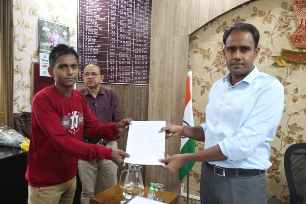 आज कलेक्टर कार्यालय में उन्होंने श्रद्धांजलि योजना के तहत श्री दिनेश सौर और श्री समीर खान को अनुकंपा नियुक्ति पत्र प्रदान किया।